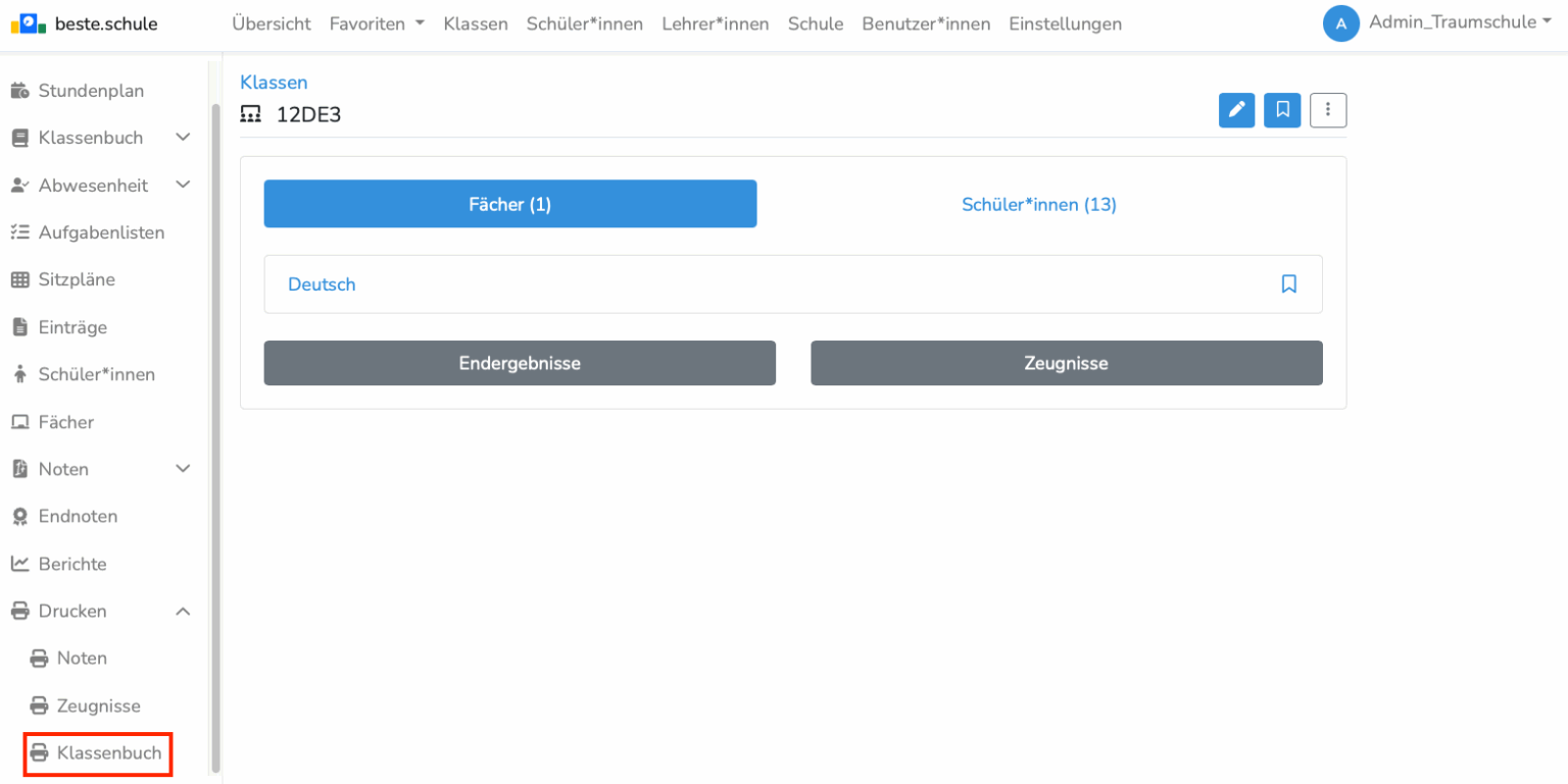 Anschließend wählen Sie die Option "Klassenbuch" aus.